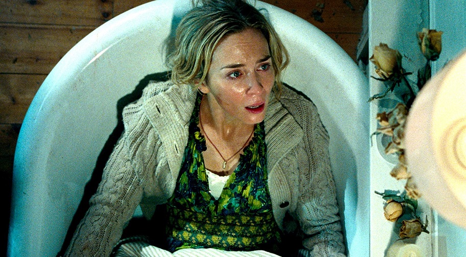 Fast forward about 320 days or so. More info has been gleaned, stricter rules have been established. Turns out that, while the globe has been ravaged by these odious ghouls, a confirmed count of just three monsters are in the immediate area where the grief-stricken Abbotts now dwell – a cornfield farmhouse that Lee has reinforced with soundproofing, lining the entire property with communicative lights and motion sensors. White lights mean everything is safe, red lights spell doom. The perimeter has been lined with sand Lee has collected, for walking on barefooted without making much noise. All logistical contingencies have been thought of. They’re learning to coexist. Except for one vital fact: Evelyn is nine months pregnant! How the hell can she possibly deliver a baby in total silence, particularly when an inadvertently made noise has already summoned at least one of the ghastly beasts to their abode? Moreover, how can Lee protect his family from suffering the same tragedy that happened less than a year earlier?