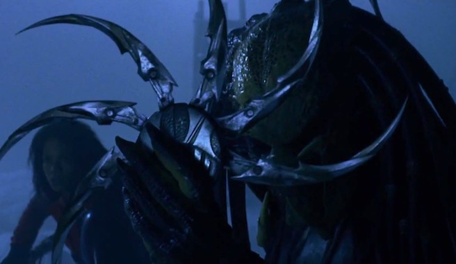 On another note; watching the flick today I got to value it on an all new level. I’ve always thought that the manner in which Anderson tied the ALIEN and the PREDATOR universes together via channeling “The Chariots of the Gods” theory and tossing in that rite of passage pyramid test, was genius. But on this round I was also wowed as to how slick the movie looked on every level. Anderson injected elegance/maturity in many of his shots, the practical creature effects (by Amalgamated Dynamics of Alien 3-4) were outstanding (that Alien Queen was a thing of sheer beauty), the Predator gadgets/weapons were freaking badass while the stellar set/production designs (by designer Richard Bridgland) kicked my derriere!