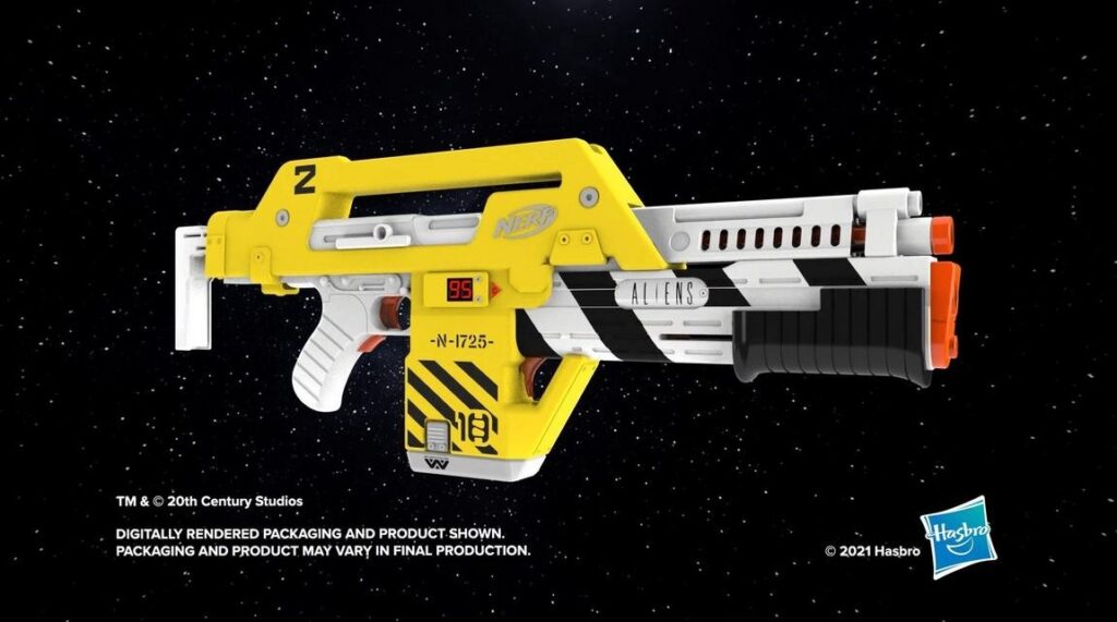 Nerf has announced that they will be releasing a limited edition Nerf-ized version of the Pulse Blaster rifles seen in James Cameron’s sci-fi action horror classic Aliens (watch it HERE) to celebrate the film’s 35th anniversary. The company is now accepting pre-orders for the Nerf LMTD Aliens M41A Pulse Blaster, which is expected to start shipping out in October.