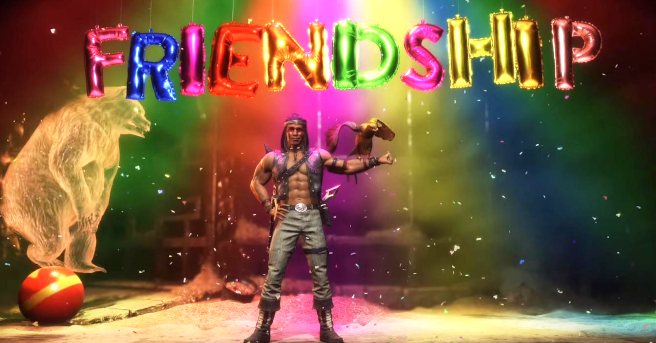 And while we've seen some Friendships from the likes of Scorpion, Sub-Zero, and Kung Lao, we're now getting the whole roster in the brand new official AFTERMATH DLC trailer! I'm especially fond of Nightwolf's circus spirit bear Friendship and Skarlet's stick figure painting, as well as the return of classic MK II Friendships, like Raiden's Kid Thunder Finisher.