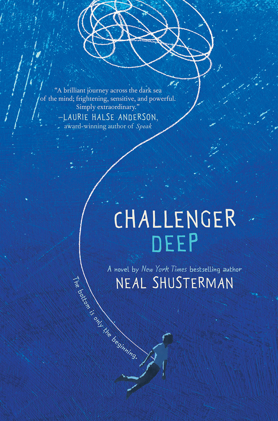 Caden Bosch lives in two worlds; one is a life with family, friends and high school. It’s all good, but he’s paranoid for no reason, thinks people are trying to kill him, and demonstrates obsessive compulsive behaviors. In his other world, he’s part of the crew for a pirate captain on a voyage to the Challenger Deep, the ocean’s deepest trench. There is a captain and his mutinous parrot, and mutterings of his fellow shipmates as they sail uncharted waters toward unknown dangers, with Caden unable to understand. The author based the book on his own son’s schizoaffective disorder.