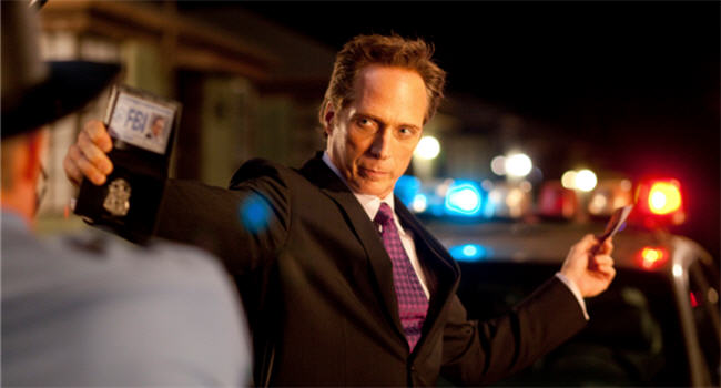 On his quest to rescue his granddaughter and gruesomely murder her kidnappers, Cage makes a few friends. Amber Heard provides the requisite eye candy as Cage's de-facto sidekick, who tags along after our hero saves her from her cheating, abusive boyfriend. His former costar from THE ROCK David Morse also shows up briefly as an old acquaintance. And then there's the always-underrated William Fichtner, who nearly steals the entire movie as The Accountant, the Devil's dickish assistant sent to find Cage and bring him back to Hell. I can't tell you how much fun it is seeing Fichtner randomly show up throughout the movie and act like a pompous ass to everyone, calling them names and nonchalantly sticking his fingers in their freshly-opened wounds. Ficthner has a great arc and his character is used perfectly throughout the film. (The idea that Hell is still somewhat of a moral place is interesting.) In fact, if Cage hadn't engaged in a John Woo-approved orgy, you could say The Accountant is the best part of DRIVE ANGRY.