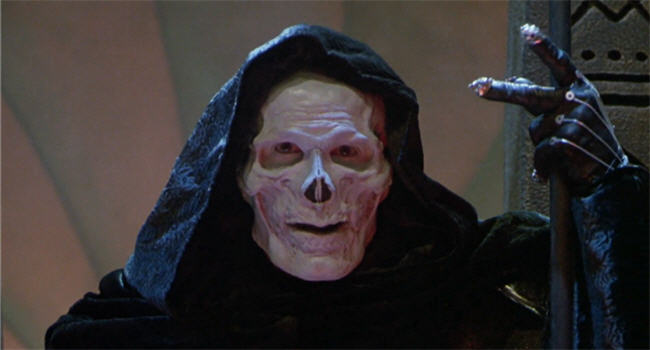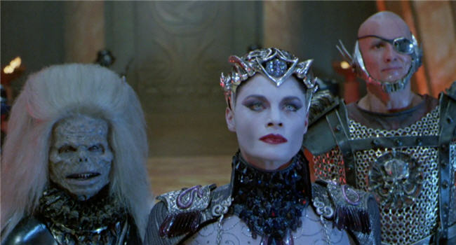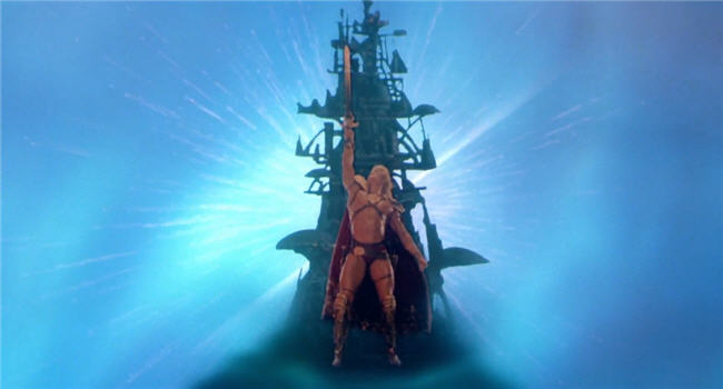 I think what works most about MASTERS OF THE UNIVERSE is the fact that it's all played relatively straight. That's a weird thing to say about a movie that feels like a mix between CONAN, FLASH GORDON and a little bit of HERCULES IN NEW YORK, but even at its cheesiest, it's obvious no one involved, from the cast to the crew, was phoning it in. Everything about Eternia was beautifully realized with massive sets and brilliant costumes. The production wasn't afraid to embrace the weirdness of the property. (Just look at the bizarre creatures making up Skeletor's team of mercenaries.) And even Bill Conti's heroic SUPERMAN-esque score manages to make a guy running around in leather underwear seem a little less silly.