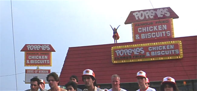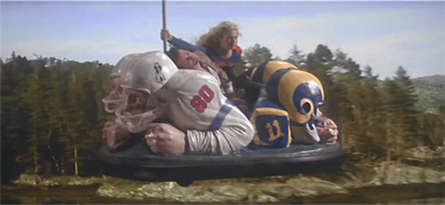 Supergirl and Serena the Middle Aged Witch clash in the film's second half in set pieces of varying levels of success. In one sequence, Serena remotely takes control of the some giant construction equipment, but Supergirl foils her plan by destroying the town's water supply and rescuing the hot guy, leaving an unconscious Lucy Lane in the rampaging machinery. In another equally asinine action scene, the witch conjures up an invisible creature for Supergirl to fight and it comes off exactly as you imagine—the filmmakers couldn't come up with a cool monster so they just left it blank. (In case you're wondering, Supergirl defeats the transparent beast by flying a lamp post in to a thunderstorm to collect the lightning and then zaps the creature to death.) Eventually Serena just gives up and sends Supergirl to the Phantom Zone and builds a giant mountain sky castle in the middle of the town and within a matter of minutes has become some sort of Nazi-like dictator that's overthrown the town. The best part is that within those few minutes, Lucy Lane has still managed to organize a student protest against the witch. (Sample sign: "G Dorm says no to Selena!")