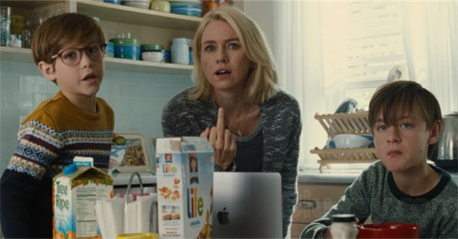 Naomi Watts is even worse as Henry’s mom, who’s written so infantile that it feels like a bad SNL sketch. She’s constantly swearing and smoking in front of her two young children, even when they beg her not to. She sits around and plays Call of Duty while her pre-teen son pays her bills and does her taxes. She feeds them dessert for breakfast, lunch and dinner when all they want is fruit. Even when her son is dying from a seizure in the hospital, she can’t sign the consent forms because “Henry does all the paperwork.”
