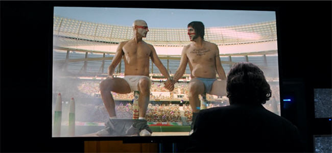 Okay, surely that one crazy scene is it and Mark Strong gets to spend the rest of the film playing a cool, suave spy, right? Nope! The final climactic scene, a touching moment where the two brothers finally reunite as a family, involves the pair emotionally connecting while being rectally penetrated. You see, there are two rockets filled with poisonous gas about to be launched and Mark Strong and Sacha Baron Cohen decide the best solution is for the two of them to sit on the rockets with the tips shoved up their asses so their anuses can absorb the poison. This actually happens and director Louis Leterrier shoots it with the visual style of any climactic action moment—spinning the camera around the two men, underwear pulled down around their ankles, holding hands while they use an active missile as a butt plug.