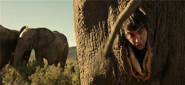 Still don't feel bad for Mark Strong? Alright, let me spoil the big elephant scene for you so you can truly understand his pain. Strong and Cohen climb inside an elephant vagina in order to hide from some bad guys. (Don't ask.) The plan works, but not before a bunch of horny male elephants begin to have sex with the female elephant with the men still inside. In order to get it to stop, Olivier Award-winner Mark Strong has to stroke the elephant dong to completion. Let me put this in layman's terms: Mark Strong has to rub a giant fake elephant penis while inside a giant fake elephant vagina until it sprays gallons and gallons of fake elephant semen all over his face and body. Mark Strong, why are you in this movie?!