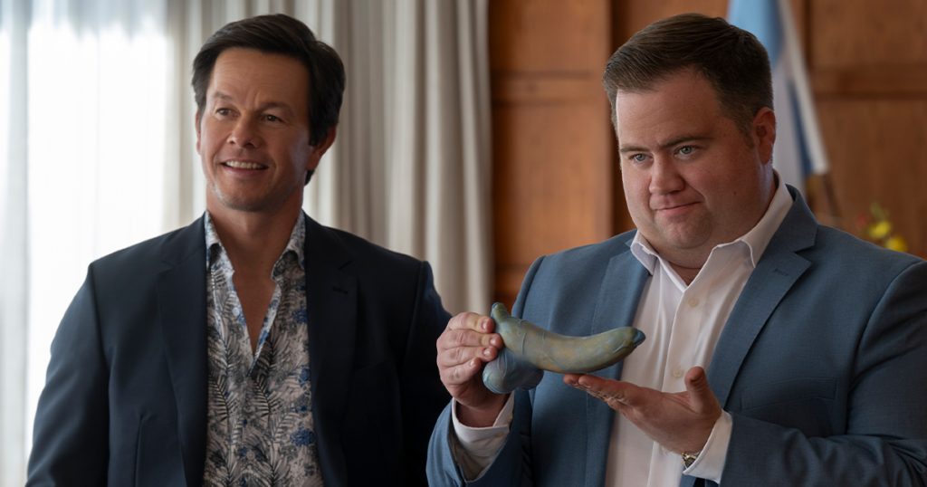 Paul Walter Hauser and Mark Wahlberg have a fun dynamic together at times but they both feel like they’re trying too hard. Hauser is usually very naturally funny, but he’s going a bit too over the top. Wahlberg would have served better as the straight man, but it seems like he doesn’t want to miss out on the fun of being ridiculous, so it throws their chemistry off. It doesn’t help that both of their characters are painfully unlikable. Outside of Bratt, the side characters like Daniela Melchior, Eric Andre, and Sasha Baron Cohen never really shine, and they all kind of blend together.