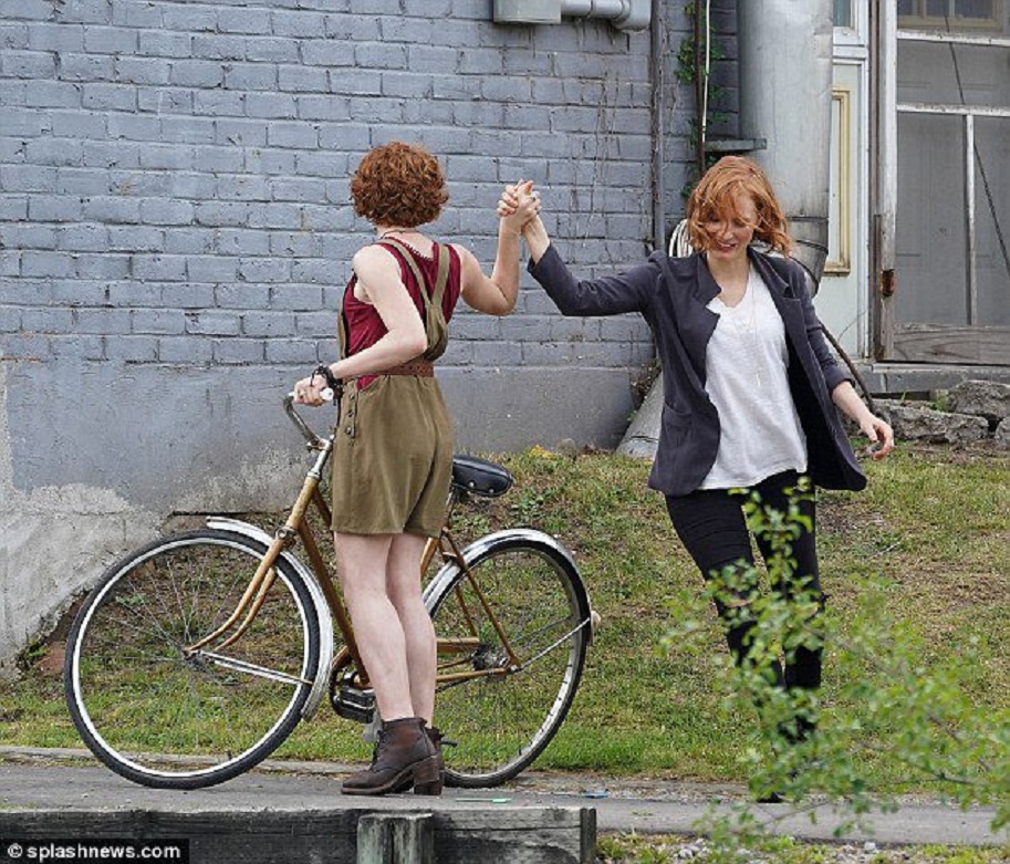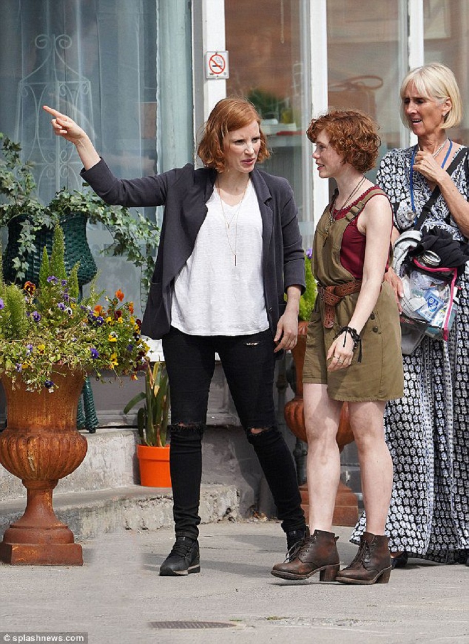 It was just the other day that we shared with you guys the first real behind the scenes shot from director Andres Muschietti's upcoming IT CHAPTER TWO. That shot featured a killer look at the new adult Losers Club (almost) in full, and today we have an extra cool look behind the scenes. The new shots feature adult Beverly played by Jessica Chastain, hanging out with young Beverly played by Sophia Lillis.