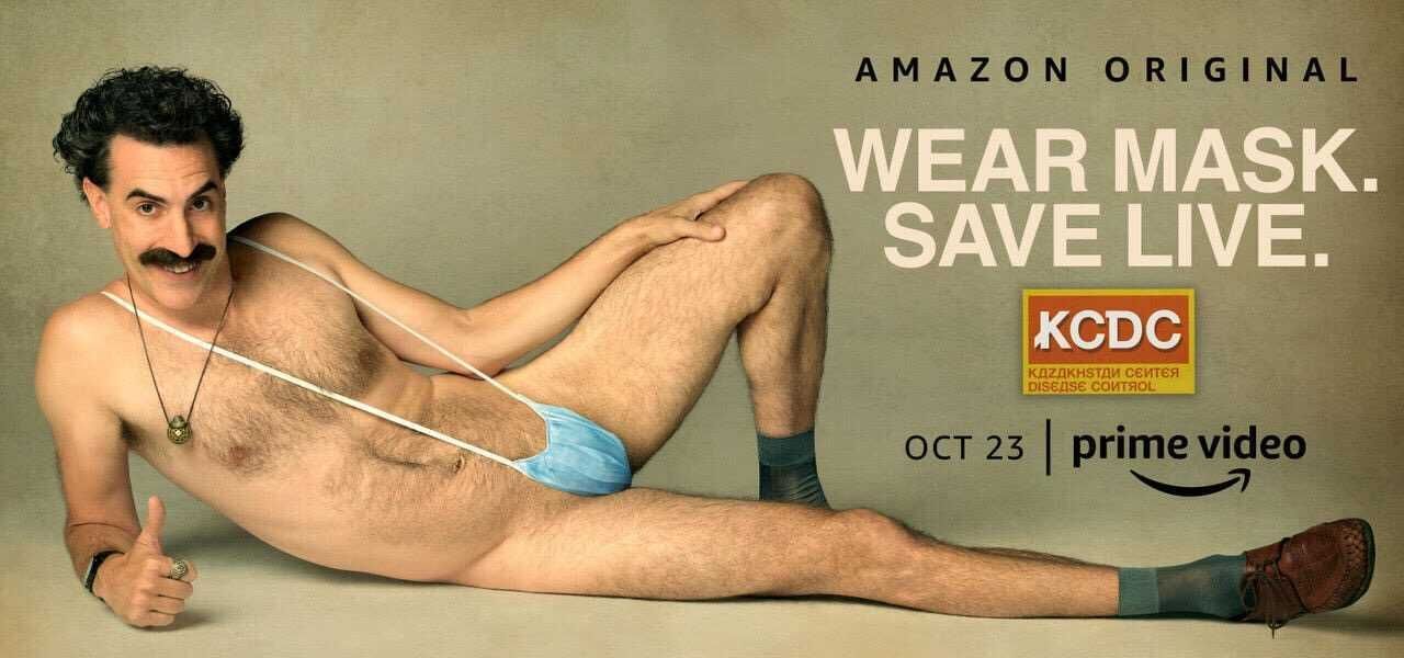 Titled BORAT SUBSEQUENT MOVIEFILM, Baron-Cohen rushed to have the film ready to open before Election Day on November 3, 2020, and it looks like it was a mission accomplished! Will YOU be watching the sequel? BORAT SUBSEQUENT MOVIEFILM hits Amazon on October 23, 2000. Oh and by the way, you can check out the film's pretty funny poster below that takes this year's motto to wear your mask to a very different level.