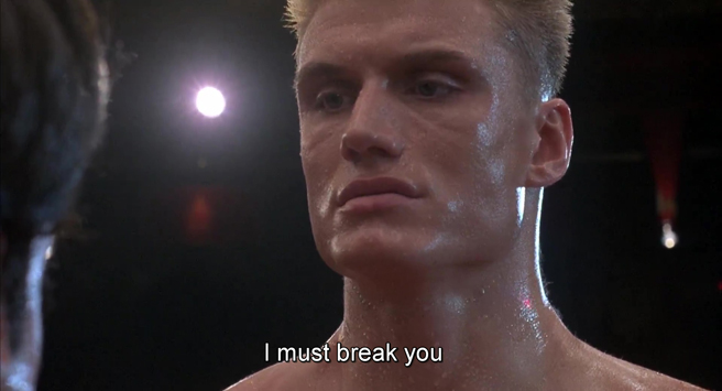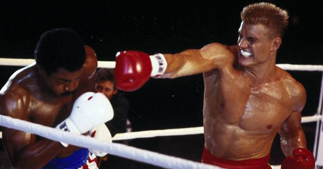 For those who have somehow never seen ROCKY IV, the movie finds reigning champion Rocky Balboa living large when his buddy Apollo Creed is urged out of retirement into an exhibition match with Ivan Drago, an intimidating boxer from the USSR (the movie is set in 1985, before the dissolution of the Soviet Union).