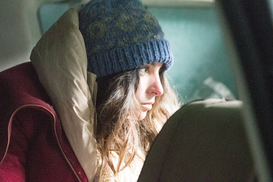 A cool visual that I really dug was the car’s everchanging state (hats off to director Brendan Walsh). As time goes by, the freezing weather changes the car’s interior covering more of it with ice while changing the color to a haunted house looking grey, which is a smart way to “show” time and how their state of mind is changing as well. Naomi starts giggling only for the camera to pan up with this beautiful top-down shot of her losing her sh*t. It’s these creative choices that help CENTIGRADE avoid the visual struggle of the one-room environment.