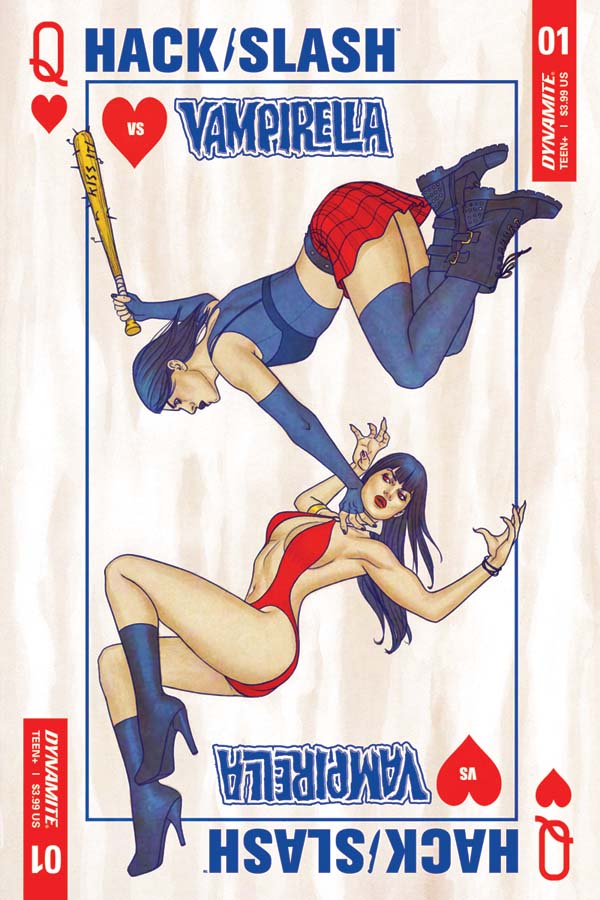 Now, the Vegas strip heats up as Cassie Hack, accompanied by her protector Vlad, are on the trail of a deadly slasher and meet the lovely, yet lethal Vampirella. The team-up event you've been waiting for is a high-stakes game of chance when they have to take on The Queen of Hearts!