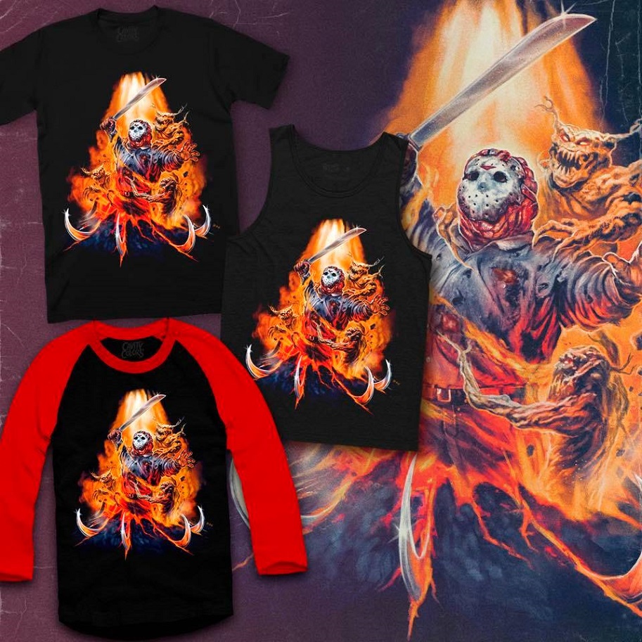 I don't know about you but I am a huge fan of Adam Marcus' ninth entry in the FRIDAY THE 13TH series JASON GOES TO HELL. And it is with this in mind that I wanted to make sure all of you fellow fans were aware that Cavity Colors has just announced a special 72-hour shirt featuring what has got to be the coolest JASON GOES TO HELL art I've ever seen.