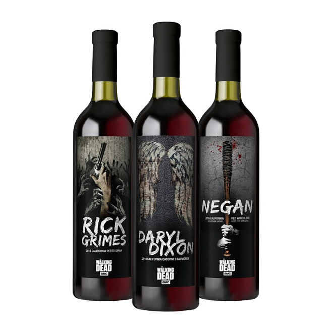 AMC has teamed with Lot18 to create The Walking Dead Wine Collection, a limited edition trio of hand-crafted blends designed to honor the essence of three characters from the popular television series. These are wines, they note, that are perfect for your weekly Walking Dead viewing parties… or for any occasion.