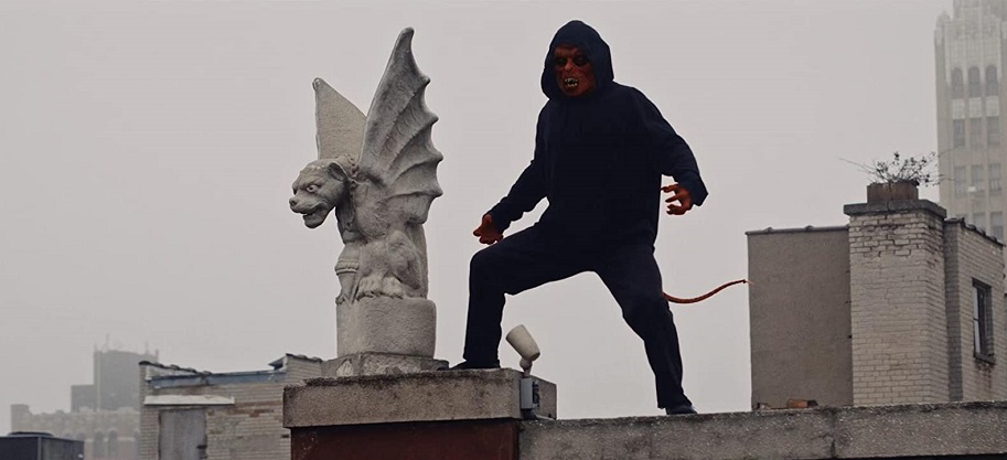 REVIEW: Ahead of the running for the most insipid and insulting low-budget horror film of 2020 is DEVIL’S NIGHT: DAWN OF THE NAIN ROUGE (WATCH HERE – OWN HERE), an irredeemably bad, nonthreatening and undaunting bore that nearly every self-respecting horror fan will struggle to finish in full. It’s amateur hour all around for a movie as stupid as you’d expect with the words Night and Dawn in the same title. Mired by poor acting, a meandering script, obvious overhead drone footage, and most defeating, a risible villain that makes the Red Devil from Fox’s campy horror-comedy Scream Queens look like halcyon-day Voorhees, there’s absolutely no reason to subject yourself to this poor 90-minute display. A shame, as the movie actually plants a kernel of intrigue early on, only to watch the premise quickly wilt under the hot lights of a camera setup. Seriously, the logo for The New Jersey Devils is more alarming than DAWN OF THE NAIN ROUGE.