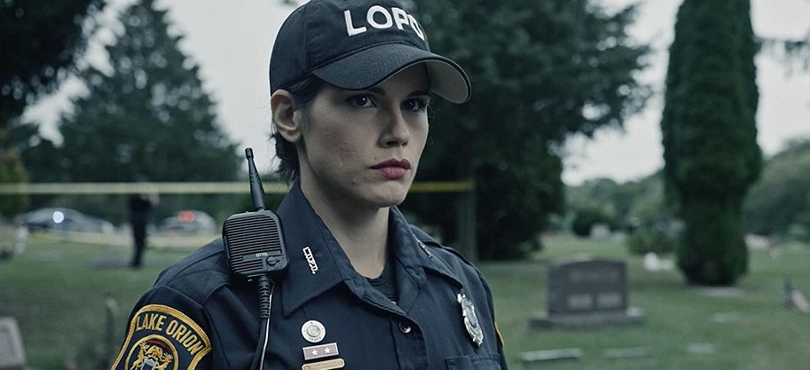The film opens in Lake Orion, Michigan, and incorporates two folkloric horror yarns specifically tethered to the region and the city of Detroit. First is the legend of the Nain Rouge, which literally translates in French to “red dwarf.” The term was coined as a way to describe an inimical Red Devil, replete with a long forked tail, that’s been attributed to several grisly and mysterious deaths in the state. The other Michigan-based tradition the movie shoehorns in with zero credibility is Devil’s Night, an annual pre-Halloween evening of mischief set on October 30th. If this sounds interesting, believe me, it very well could have been with a more focused screenplay, better acting, more adroit direction, and actual scariness. Alas, none of these aspects come to bear in a film saddled by inferior filmmaking across the board. We meet a former military vet and local police officer Billie Jean Finnick (Jesi Jensen), a mirthless drag who laments a fallen friend during their time in battle. Finnick begins responding to several calls in the city about a “little red devil” that’s been savagely slaughtering people of all stripes, criminals included.