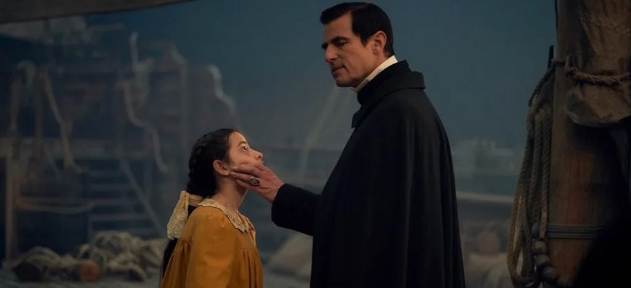 In the second chapter, Dracula recounts his time traveling to England via the infamous Demeter. Captain Sokolov (Jonathan Aris) presides over the journey, during which Dracula does his best JASON TAKES MANHATTAN impression, savagely slaughtering every person dumb enough to allow themselves to be alone on the ship with the Count. Seriously, Dracula eats more dudes than Andy Dick on a Caribbean cruise! Unfortunately, as the show progresses, it increases its ineffectively stylized stints of violence, which are often punctuated with cheesy slow-motion zooms and excruciatingly shrill sound cues that feel akin to what you’d see on a sedate, major network production. Made in partnership with the BBC by the producers behind Sherlock and Dr. Who (Mark Gatsis, Steven Moffat), Dracula feels made for broad television networks, not unlike what we saw from say, Fox’s Exorcist series. The point is, this is no paid cable outing, a la HBO or Showtime, and it seems meant to be digested by the 14-and-up the crowd. That’s all fine, but unlikely to strike fear in the hearts of most adult horror fans, particularly ones inured to or well versed in Dracula’s rich history.