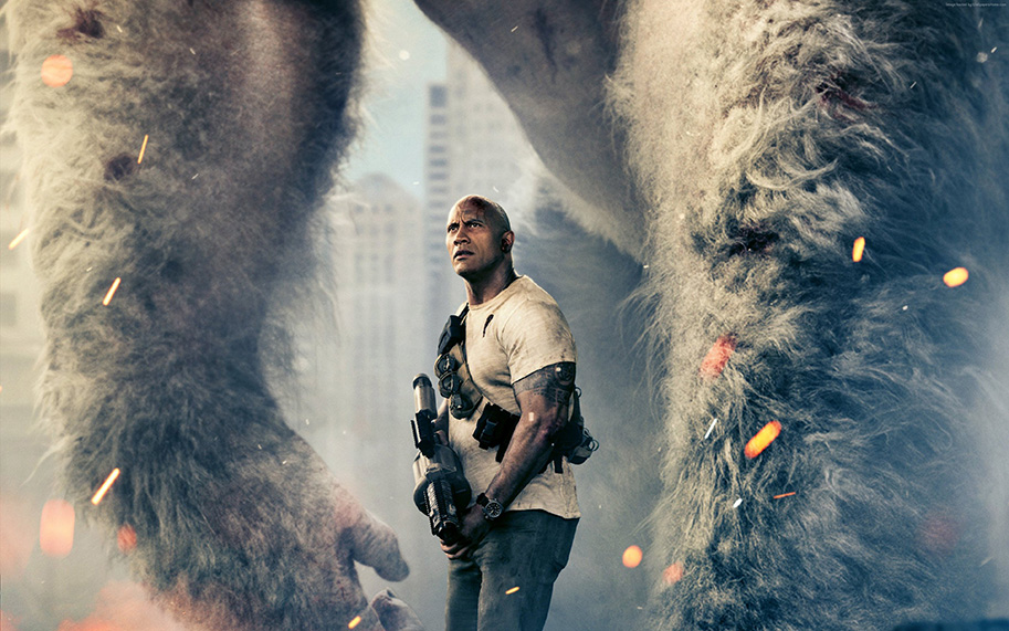 In the movie, Primatologist Davis Okoye (Johnson), a man who keeps people at a distance, shares an unshakable bond with George, the extraordinarily intelligent, silverback gorilla who has been in his care since birth. But a rogue genetic experiment gone awry mutates this gentle ape into a raging creature of enormous size. To make matters worse, it¹s soon discovered there are other similarly altered animals. As these newly created alpha predators tear across North America, destroying everything in their path, Okoye teams with a discredited genetic engineer to secure an antidote, fighting his way through an ever-changing battlefield, not only to halt a global catastrophe but to save the fearsome creature that was once his friend.