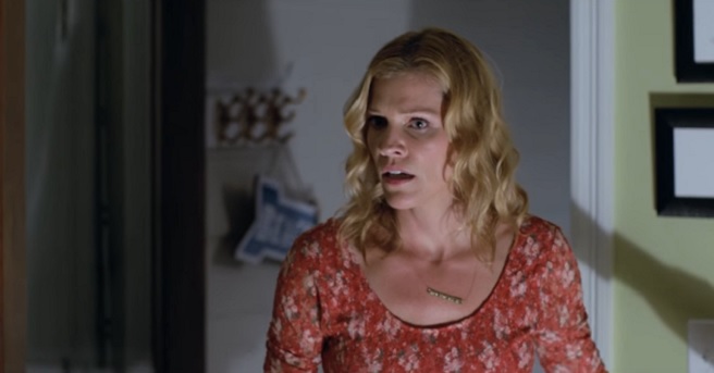 The clip showcases Helfer walking into her vacation cabin and finding it ten types of ransacked. She tries to wake up her man, who is still sleeping on the couch (wtf? don't trust him!) and then the suspense truly begins.