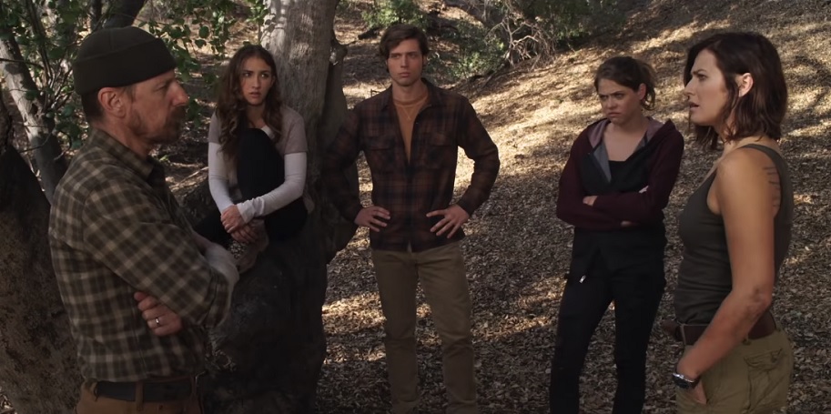 The film begins with a brutal bang as an unseen man sits in a dark and dingy room with a gun in his hand. We see that there is a sleeping, bloody, half-naked woman tied to a bed in front of him. See where this is going? No, you don't. The woman's what this film calls Feral, and springs awake in full-on blood-screaming horror – so the man puts one in between her yellow eyes with the quickness. Not a bad way to start off a flick I must say! From there we meet our core group of heroes including the above-mentioned Scout Taylor-Compton and Olivia Luccardi. They're backpacking with a group of cannon fodder – I mean friends – and all seems to be going swimmingly. But it isn't long before Compton, Luccardi, and their hiking homies are set upon by a "feral" human. And boy is the first attack GORY. We get ripped out intestines and the works. The movie knows how to keep its pace rolling in the red stuff.