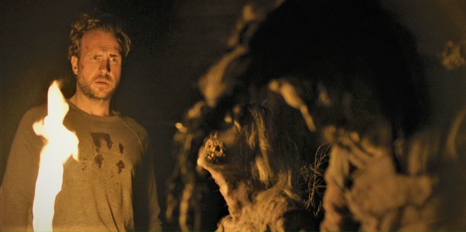 This was the moment that freaked me out the most – at first. To put it another way, this was the first moment in the film where I said, "Oh, boy, we're in for some shite with this one." And yet another way of putting it is this was the first moment where I made an excuse, paused the flick, and took a "bathroom break." The moment goes like this: The guy who played with the Alien worm in PROMETHEUS (aka Rafe Spall) is sleeping with his buddies in a BLAIR WITCH house in the middle of the woods. They've seen some wicked witchcraft shite and now they're bedding down for the night. Spall is the only one awake. Lightning flashes. Thunder crashes. Again and again. Then one time, the lightning flashes… and holds… Bright white light blares in through the windows. Shining through like the freaking sun. This was effectively scary to me in a truly primal way. Thanks, THE RITUAL. Now I'm scared of lightning again.