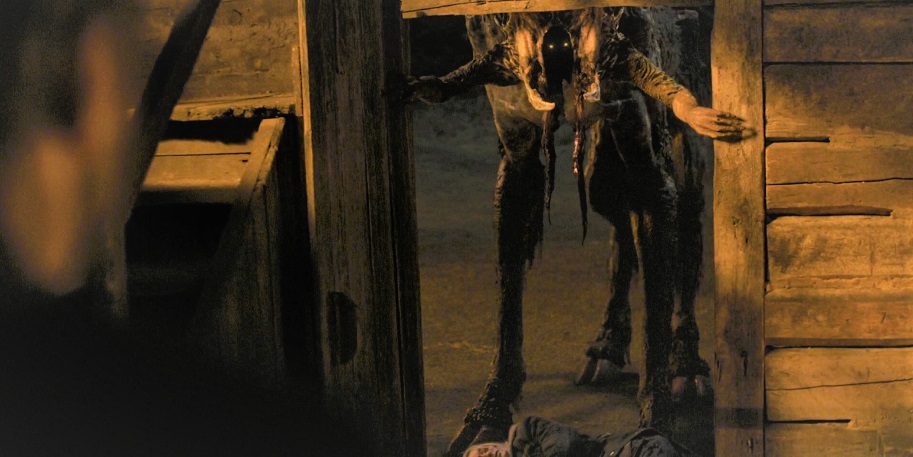 No doubt there are going to more than a handful of peeps who complain about the main baddie in THE RITUAL. Some will say it looks silly. It doesn't, at all… Well, it kinda does. But that's forgivable when you're trying to conjuring unimaginable terror on four legs. Personally, I found the creature to be an utter delight. Sure, it was less horrific when we saw it outright, but those are just the rules of the game, unfortunately. That said, the design was so f*cked and nightmare-shifting I was positively delighted (horrified) by what I witnessed in these woods. Badass and brave choices, filmmakers. Bonus Points: The creature is based on Norse mythology and the Jötnar clan of giants. Great.