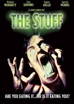 The stuff of the title is a white substance that is found bubbling out of the ground, and the first instinct of the person who discovers it is to taste it. And he finds that it’s delicious. Soon The Stuff is the country’s new dessert sensation, competition for ice cream. Problem is, this substance is a living entity that can move on its own and isn’t nearly as healthy as its nutritional facts would lead you to believe. It soon becomes clear that eating too much of this addictive Stuff has a severe impact on the mind and body of its consumer.