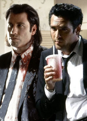 FROM DUSK TILL DAWN was Clooney’s first big post-“ER” role, and it was nice to see him play against type (he’s certainly a more convincing convict than Tarantino’s awkward perv). But RESERVOIR DOGS imprinted Michael Madsen forever as Mr. Blonde (not to mention conjuring specific ear-related imagery whenever Stealers Wheel’s song gets airplay), and PULP FICTION resuscitated John Travolta’s career and presented unforgettable movie moments from his iconic felon.