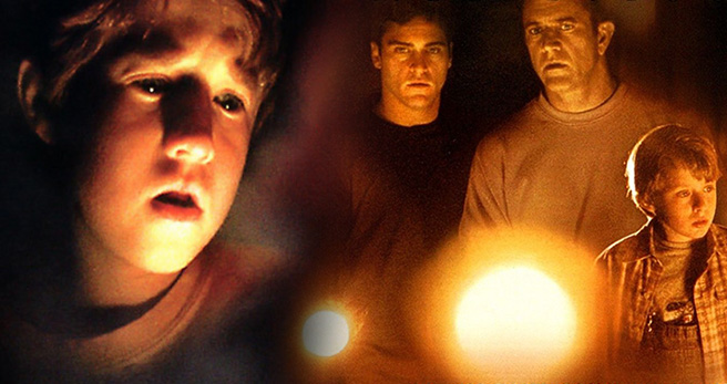 With SIGNS Shyamalan didn't write as entertaining and rewarding a tale as he did with SENSE, but where he somewhat makes up for it is telling his most personal story of the lot, but still wrapping it in the supernatural genre he works best in. A story about a nigh-broken man dealing with his lack of faith and and trying to interpret the — ahem — signs around him as the alien invasion lies on the doorstep of his farmhouse. Where I enjoy this script is in the depiction of the family itself, with each member having their own defined personalities and quirks — all of which often clash. It's probably his funniest movie, thanks to some adorable lines for Bo and great deadpan work from Phoenix and Gibson. This is perhaps a saving grace as my only real problem with the writing is that leaves too much room for muted conversation that can slow things down between the scares. The family dynamic is written in a way that keeps things moving along, and the actual direction on screen creates a sense of dread, also keeping things engaging. But with SIGNS Shyamalan wrote a story about finding your faith — which on that note it's a well-written, detailed story that can be emotionally rewarding — even if it means the story itself relies on simple plot points to get the viewer to that point. The story isn't so challenging as it life-affirming, which is fine, but in being so there's not a lot of places for it to go, whereas with SENSE the foundation is built on mystery, making for a more layered story.