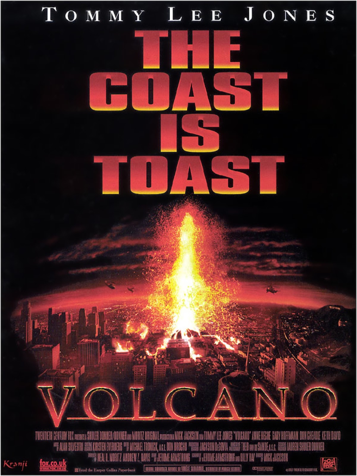 After a minor earthquake strikes Los Angeles, a geologist (Heche) tries to convince Emergency Management director Mike Roark (Jones) that a volcano is rapidly forming under the city. When “lava bombs” start launching out of the La Brea Tar pits and magma pours through the streets, Roark must come up with a plan to save the city.