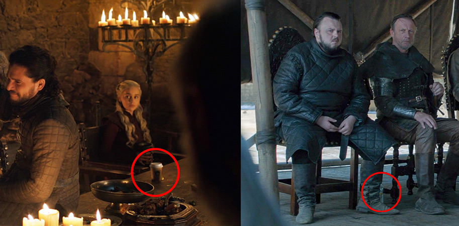 The first and more egregious error came in the second episode, where after the intense Battle of Winterfell everyone is gathering to celebrate how they did not die, come back to life and then die again. During one moment, it became very clear to viewers one goblet was not like the others, and thanks to the power of the instant rewind we can see the Starbucks cup sitting dead in the middle of the table. How no one acting in the scene saw this, who knows? I get it, they had all just spent weeks and weeks slashing at dudes in zombie makeup and freezing off half their bodies, and Starbucks cups themselves just always seem to be around anyway – like air or angry tweets about Star Wars. But, seriously, how in the world of this so meticulously crafted show that they release making-of featurettes after each episode that no one spotted the macchiato next to the Mother of Dragons?