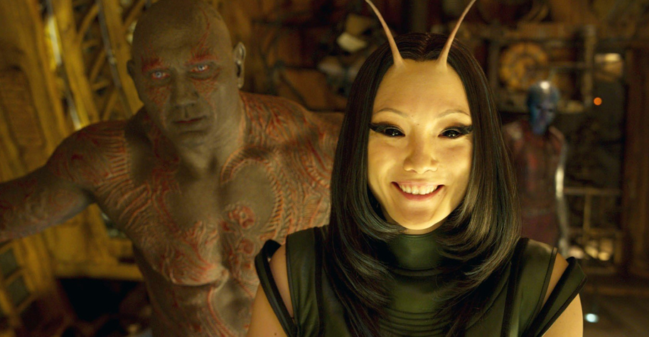 We're also introduced to Ego's delightfully quirky servant, Mantis (Pom Klementieff), who ends up taking the side of the Guardians; in fact, it's thanks to her emphatic abilities that she was able to put Ego to sleep at a critical moment during the final battle. Along with the other Guardians, Mantis will be returning in AVENGERS: INFINITY WAR.