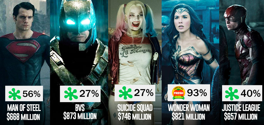 Many would argue that a review can make or break a movie and it's very true that studios have become slaves to that almighty Rotten Tomatoes score of late with everyone aiming to get that "certified fresh" badge to trumpet their film (oftentimes now used directly in TV spots or trailers), which would presumably sell the movie to casual filmgoers and fanatics alike. However, the reliability and metric of this system is questionable at best and has proven not to be a measure of a film's actual quality, but rather a cumulative percentage from accredited critics (normally totaling between 190 – 250 reviews), leading to one of three ratings; fresh, rotten or the coveted "certified fresh" (a film that scores a 75 percent or higher with at least 40 reviews). Unfortunately, this measure is hardly the measure for success or quality. Fresh (or "certified fresh") doesn't mean good box office nor does rotten mean poor box office. In terms of quality, we're talking about 250 reviews from a planet of more than seven billion people that are writing about art, not the best toothbrush on the market (and, full disclosure, at least two of our own reviewers submit to RT, contributing to that "score" regularly). With all that said, how is it that two movies, each a risk given their unproven box-office mettle (i.e. first solo features for both characters), managed to outpace negative critical reviews and become box-office behemoths in the face of presumably tough competition and, ultimately, how much does a critical consensus matter in terms of not only success, but quality?