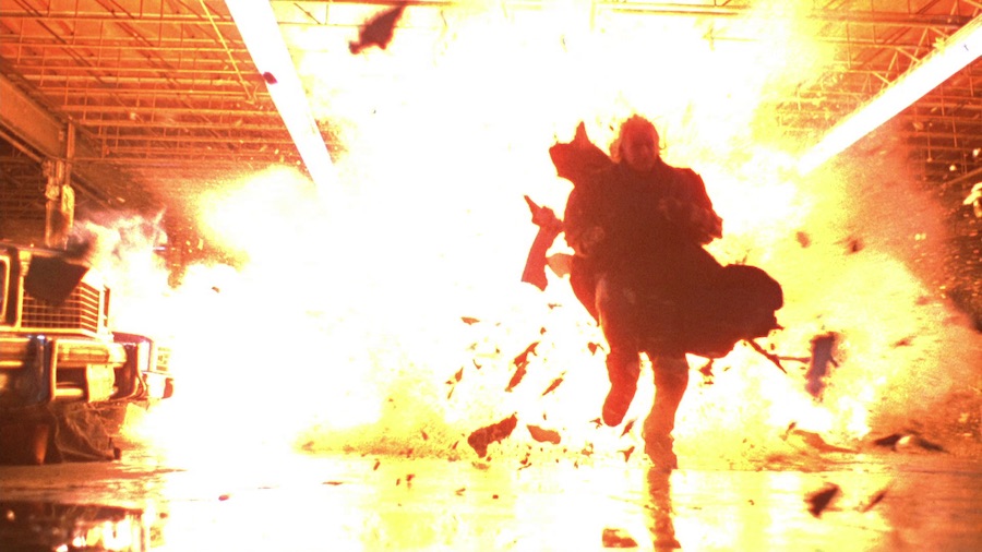 Speaking of director Baxley, he’s also one of the key reasons this ride so hit the H spot. Coming from a stunt coordinator/stuntie background and right off his directorial debut ACTION JACKSON starring Carl Weathers, Baxley brought his mammoth wam-bam experience to this one and milked his low budget as much as he could. The result? He filled the screen with as much in-camera mayhem as he could. You like real explosions? You’ll be BEYOND well served here cause the flick went Kaboom crazy! And to top that off, more often than none it was the actual actors doing the stunts. For example that epic bit where our the baddie runs on top of car hoods as they blow up one after another behind him was executed by the actor behind the role Matthias Hues. Damn. Impressive! Much respect!