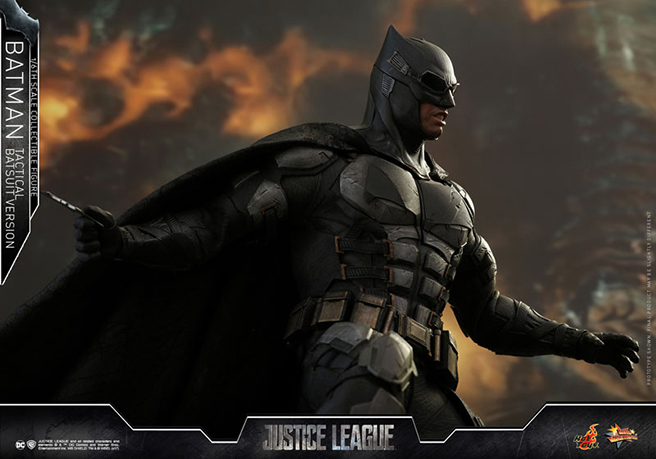 With billions of dollars at his disposal, it's no surprise that Bruce Wayne/Batman (Ben Affleck) frequently trots out new and specialized versions of his iconic Batsuit, which is certainly a good thing for those in the toy industry. Hot Toys, one of the best in the business, has released a handful of images of their take on one of Batman's new outfits, the Tactical Batsuit, from Zack Snyder's upcoming JUSTICE LEAGUE. More details about the item will be revealed later, but it appears to feature three facial expressions (I'm not sure what to think of the raging clue face), a handful of…hands, and a few accessories such as a grappling gun and batarangs. The special edition of the figure will also feature a bonus Mother Box, so, look forward to that. As usual, Hot Toys has done amazing work and I can already hear millions of wallets crying out in terror.