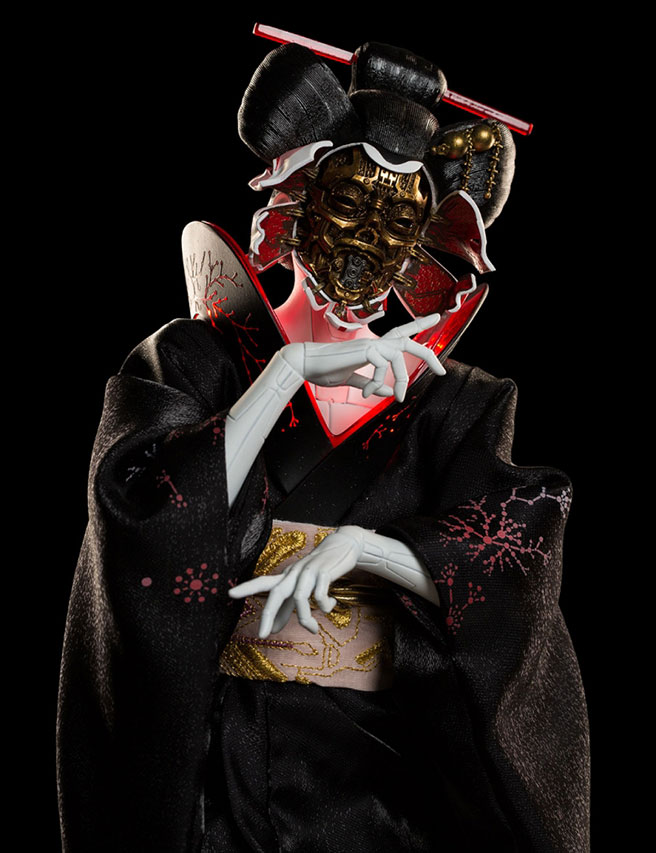 Coming directly from the Weta Workshop that designed the characters for the movie, these limited edition figures are incredibly detailed, 1:4 scale versions of one of the geishas seen in the trailer and of Scarlett Johansson’s Major. Flo Foxworthy, senior costume technician at Weta, had this to say about the figure creation process: