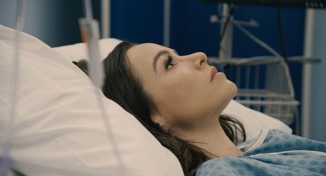 Harris wakes up and the place has been ransacked. Everyone is gone and only a lone ghostly figure roams the halls with her. After a few minutes of this Harris snaps back to her car, still trying to get out of town before the hurricane hits. WTF? As she tries to get her bearings – boom – there she goes again. Back in the hospital. Only this time the place looks like new. This time the place is filled with doctors and nurses. And they are all out to get her. From there the movie jumps onto a time-loop structure which sees Harris' character sent back to her hospital bed time and time again. Along the way, she is joined by a few fellow patients who are being hunted as well. From there things go from bad to worse quicker than you can say graphic brain surgery.