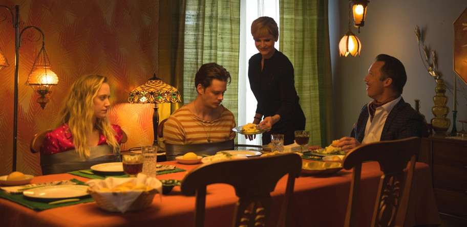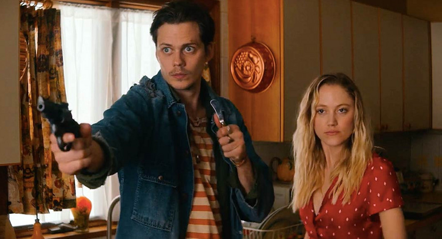 In VILLAINS, Bill Skarsgard (taking a break from terrorizing children in the IT films) and Maika Monroe (IT FOLLOWS, THE GUEST) play low-rent criminals on the run Mickey and Jules, who are headed to Florida to embark on Mickey's dream of selling seashells on the beach. (That gives you an idea how smart this pair is.) After a nearly-bungled gas station robbery, their car breaks down in the middle of nowhere, forcing them to break into a nearby house in order to obtain a new set of wheels. As you might expect, this is no ordinary house, and its owners – played by Jeffrey Donovan and Kyra Sedgwick – are far from the wholesome folks they present themselves to be. What follows is a highly bizarre, darkly funny battle of wills between the two couples. Who, if anyone, will make it out of there alive?