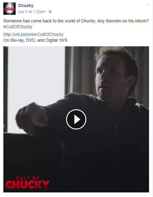 Okay guys, put your film theory hats on because the official CULT OF CHUCKY Facebook page just gave us a whopper to think on. The page just posted a cryptic video featuring some dude with the headline: