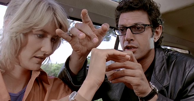 Jeff Goldblum joined forces with HeadCount in order to urge voters to register to vote, check their registration, or request absentee or mail-in ballots. The actor promised that if 1,000 people did just that via a link he provided, he would recreate a scene from JURASSIC PARK. Well, the people have spoken and Jeff Goldblum has made good on his word. Together with Sam Neill, Goldblum recreated the Chaos Theory moment from the original film, all while a bemused Laura Dern looks on. Not only that, but Goldblum promised another JURASSIC PARK recreation if they get 1,000 more voting actions through his link.