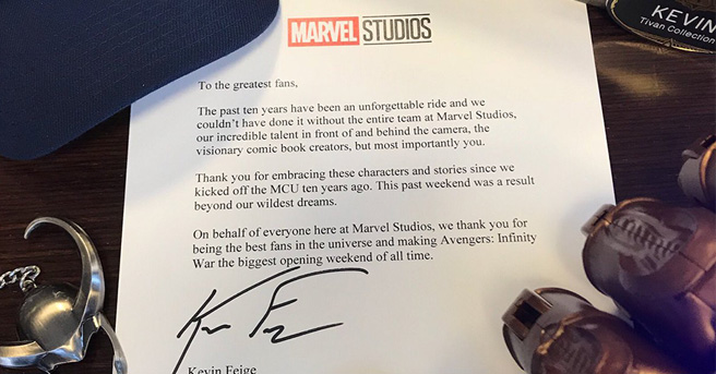 On behalf of everyone here at Marvel Studios, we thank you for being the best fans in the universe and making Avengers: Infinity War the biggest opening weekend of all time.