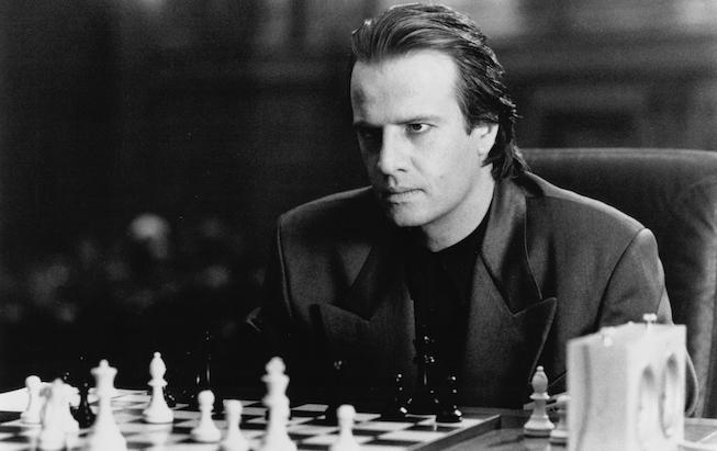 LOWDOWN: I’m on a plane right now, on my way to LA. While there I will have my annual chess tournaments with my bro Eric Red (who always kicks my ass). So it got me in the mood for a creepy chess movie. Sadly they are scarce. But then I remembered the 1992 KNIGHT MOVES (ON DVD HERE), which is probably the ONLY serial killer flick ever made set around the wondrous game that is chess. Thankfully, I had it on my laptop. I hadn’t seen the film in eons but I remembered digging it enough on the big screen (as opposed to all the critics who took a big steamy dump on it at the time) to have a dub of it on VHS.