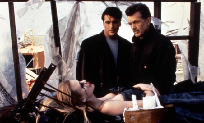 On the sour side, yeah the thing stuck to the thriller 101 mold a tad too much in places (the usual fake scare/real scare beats – exposition charged killer monologue etc.) And was it me or was the hero’s “dead wife” backstory ta bit far-fetched (never heard of a divorce)? Finally, the obligatory love story between our two leads felt forced as they often did in 90’s thrillers. Although to be fair it did add tension to the proceedings and a healthy dose of sexy-time.
