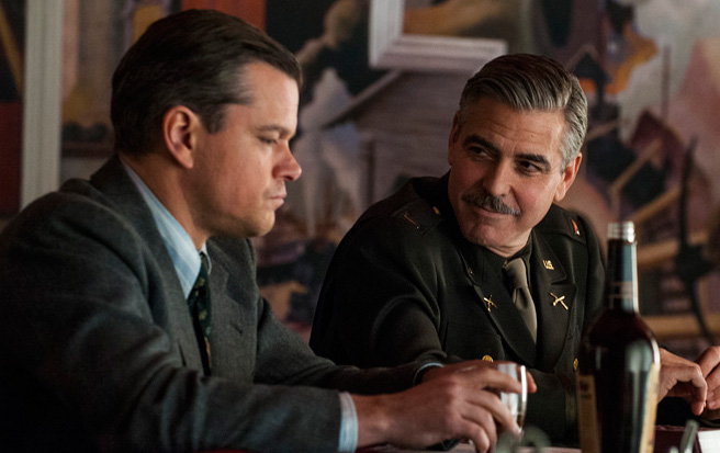 From director George Clooney, the film stars George Clooney, Matt Damon, Bill Murray, John Goodman, Jean Dujardin, Bob Balaban, Hugh Bonneville, and Cate Blanchett. The screenplay is by George Clooney & Grant Heslov, based on the book by Robert M. Edsel with Bret Witter. Produced by Grant Heslov and George Clooney.