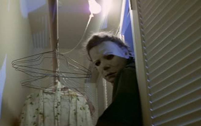 The mask here was the same that was used in the original Halloween but the paint had faded since and what was left had become more of a yellowish color due to dust and ample cigarette smoke (from producer Debra Hill who owned the mask after the shoot of Part 1). So this is my favorite version of the mask. Old school with a morbid twist! There’s just something mucho unsettling about it.