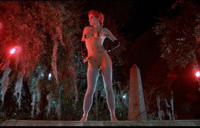 Wow. Melinda Clarke, RETURN OF THE LIVING DEAD III. What can a man say? After Linnea Quigley set a ridiculously high bar in Dan O’Bannon’s first in the series, producers clearly wanted to up the ante. Not sure about the ante, but boners certainly went up when Clarke morphs into a walker, exuding the kind of sex appeal reserved for alt-sex scene at Kink.com. Gorgeous face, supple bosom, the shredded garb, the spiked shoulders, the nipple and facial piercings, the smeared blood, the chains…this zombie bitch basically bridges heaven and hell!
