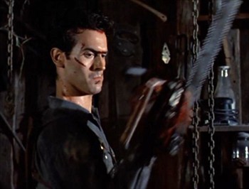 If you want to nail down the moment that nerd love and Sam Raimi became one, just check out the not yet buff Bruce Campbell as he straps on serious hardware in Evil Dead II after cutting off his own hand! I won’t argue that Leatherface works the rotating saw well too, but nobody does it justice like Ash when it comes time to man up and get down.