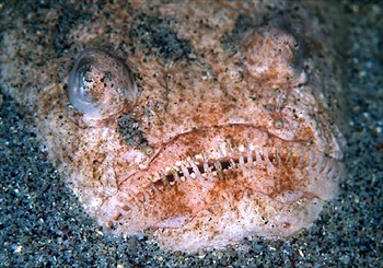 How sweet. They’re called stargazers because both eyes are on the top of their head so they’re always looking skyward. Of course so is their mouth to help them snag prey which they ambush from below after burying themselves in sand. And they’ve got venomous stingers. And they give off electric shocks. Plus word on the street is they’ll make fun of your mamma while they destroy your ass. Just straight up meanies.
