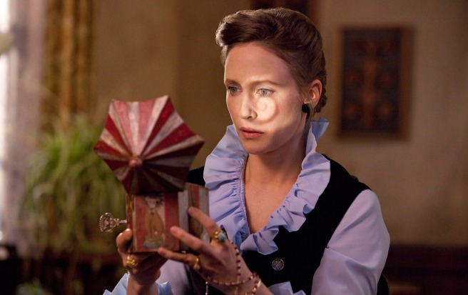 Whether you believe in the ghostly occurrences the real life Ed and Lorraine Warren professed to have, it is hard not to be haunted by THE CONJURING – a film that exams one of their investigations. The James Wan directed and supposed true haunted house/demonic possession story is simply told with elements we have seen before, yet it all works with seriously spooky goodness. With the use of mostly practical effects and a fantastic cast including the terrific Vera Farmiga and Lili Taylor, the horror in this haunted tale is all the more terrifying. Oftentimes the less you see is far more goose bump inducing than filling the screen with gory and ghastly images. THE CONJURING is a perfect example of this. That moment when a young girl is nearly frozen in fear insisting that something unseen is standing in the doorway shrouded in darkness is about as scary as you can get.